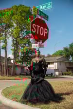 Exuding dark elegance and opulence, the bowtastic Gown is a one-of-a-kind couture piece designed to captivate. Handcrafted , this striking dress features a dramatic tulle hem and a built-in corset for a flawless silhouette.
